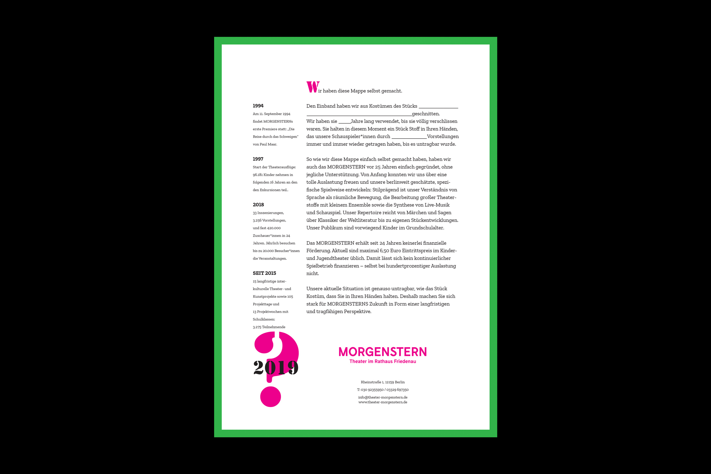 Morgenstern Theatre needed financial support in order to continue its activity. To show exactly how desperate their situation was, we made a unique Direct Mailing campaign.